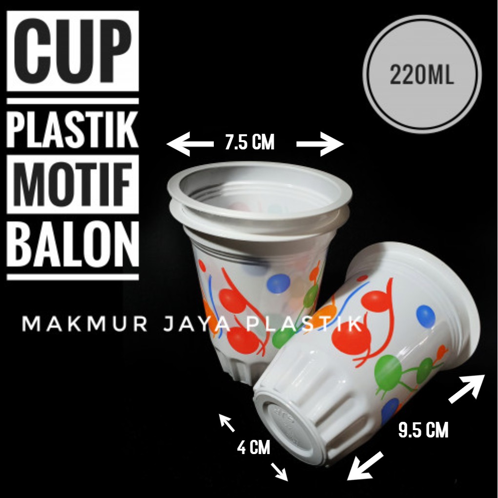 Paling Murah Perlengkapan di Kabupaten Majalengka [ Cup Balon - 220 Ml ] Gelas Cup Pp Motif Plastik Isi 50 Pc dari Tidak Ada Merek Kota Bekasi