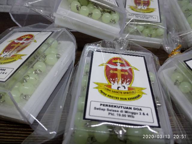 Kalung Rosario + Design + Box Design (apabila pembelian diatas 30 pcs)DESKRIPSI:= Bahan : mote diameter 6 mm= Bahan kawat, rantai, dan ring : monel (anti karat)= Bahan salib dan harces : besi nikel lapis kromVARIAN WARNA:- Boleh pesan sesuai keinginan anda. Kami menyediakan aneka aksesoris Rosario untuk souvenir pada hari pernikahan, ulang tahun, ulang tahun pernikahan, pemberkatan babtis, doa arwah, dll. untuk partai besar maupun kecil dengan harga murah dan terjangkau. berbagai model bentuk baik diameter kecil maupun diameter besar. Banyak aneka model dan beragam bahan