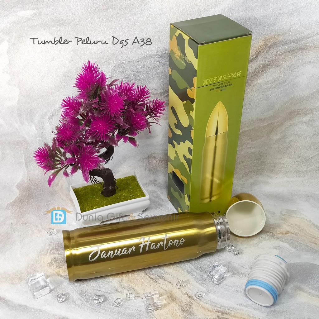 Name: Free Laser Nama | Tumbler Peluru Unik Dgs A38 Gold - Stainless Steel 500ml Free Custom Nama