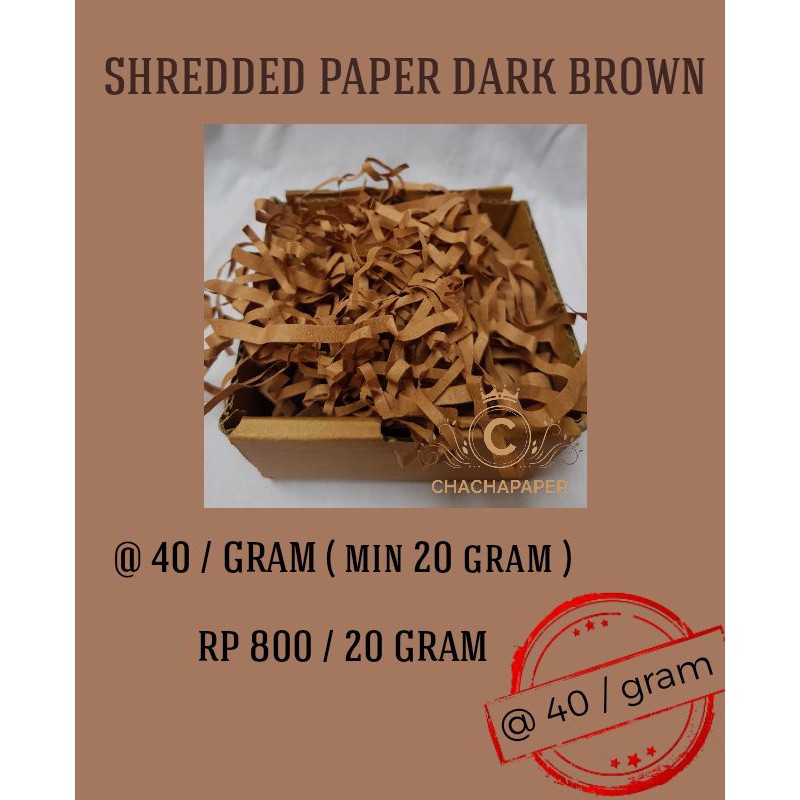 Agen Perlengkapan di Kabupaten Lamongan [ 20 Grams ]shredded Paper/ Kertas Cacah/ Gift Box Filler/ Isian Parcel (dark Brown) dari Chachapaper Kota Surabaya